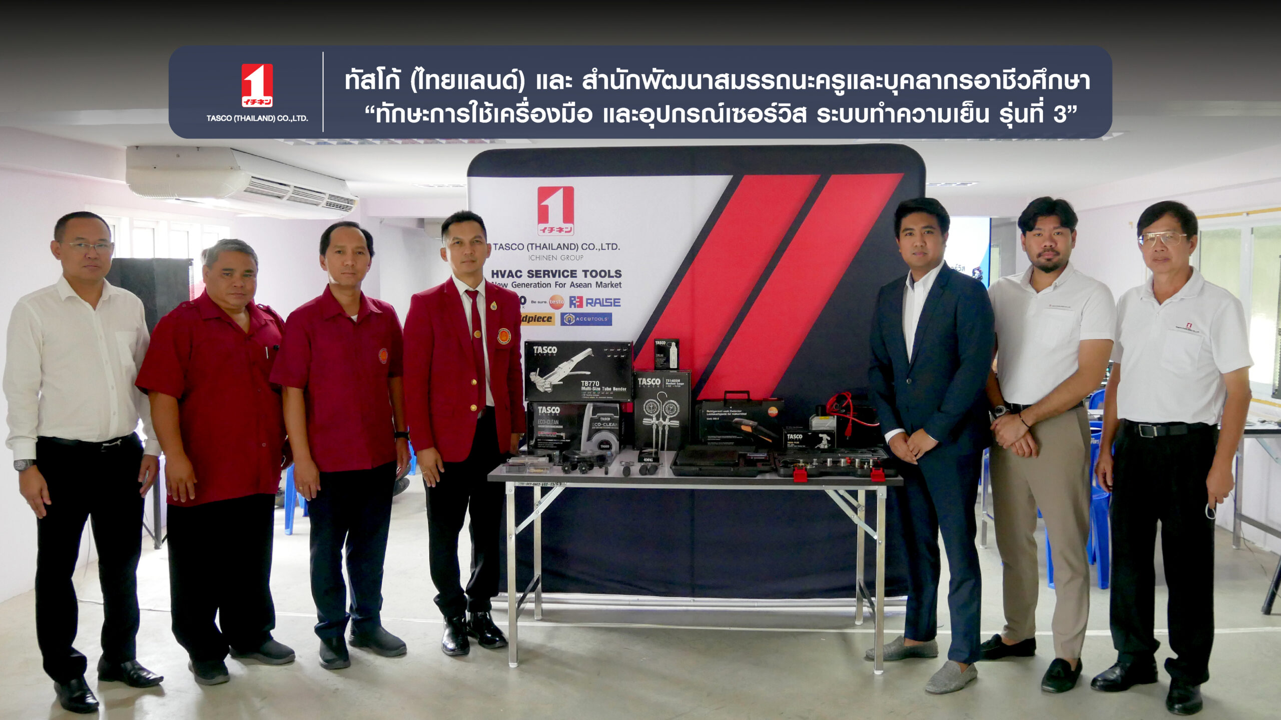 บริษัท ทัสโก้ (ไทยแลนด์) จำกัด ร่วมกับ สำนักพัฒนาสมรรถนะครูและบุคลากรอาชีวศึกษา ได้จัดการฝึกโครงการอบรมเชิงปฎิบัติการการใช้เครื่องมือและอุปกรณ์เซอร์วิส ระบบทำความเย็น รุ่นที่ 2”