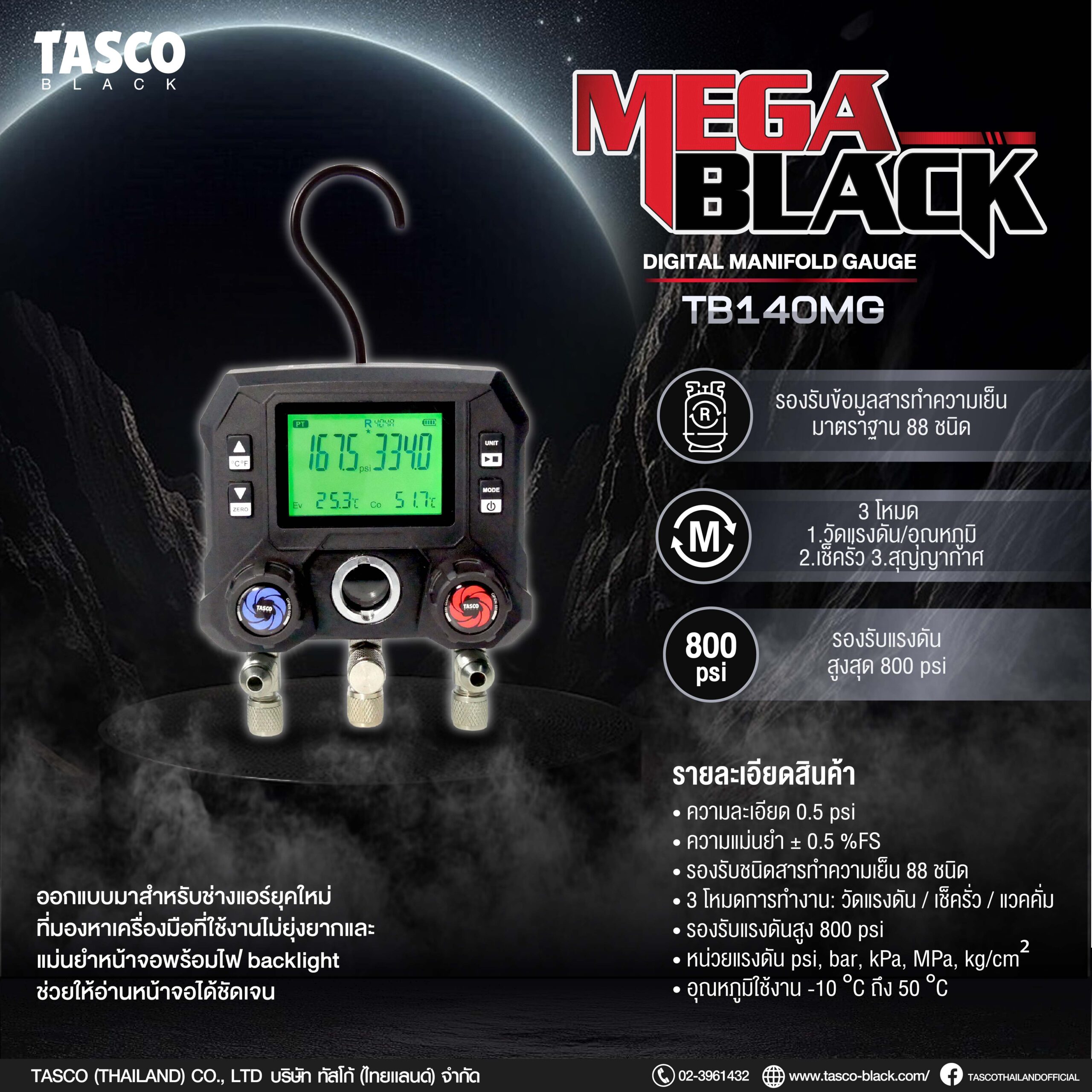 สัมผัสประสบการณ์การทำงานที่เหนือกว่าด้วย TB140MG MEGA BLACK ที่ออกแบบมาเพื่อเปลี่ยนงานตรวจเช็คและเติมน้ำยาแอร์ที่ยุ่งยาก ให้กลายเป็นเรื่องง่าย สะดวก และแม่นยำสูงสุด